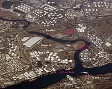 In 2012 Hurricane Sandy produced a 15-foot tidal surge in Tremley Point. Homes and roads were destroyed and hazardous material washed up.[4] Beginning in 2014, using HUD funding, New Jersey started buying out Tremley Point homes in flood prone areas. "Where retreat is the only option," demolished homes will be replaced by open spaces.[2] The plan is to restore 190 acres of degraded tidal salt marshes and floodplain forest and meadow, so they might be a buffer against storm surges[5]