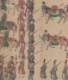 The Martial Arts Department (Korean: 무예청; Hanja: 武藝廳) was a division of the Military Training Command, who served as guards for King Seonjo during the Imjin War. It was an organization composed of skilled martial artists who were responsible for guarding the five grand palaces and providing close protection to the king. The officers belonging to the office were specially referred to as Martial Arts Special Guards (무예별감) or simply Martial Guards (무감; 武監).[1] It was also known as the military officials (무관; 武官; mugwan).[2]