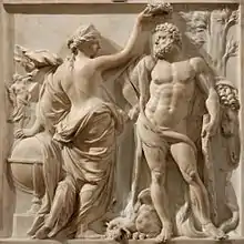 From this time he received royal commissions, at Les Invalides and at Versailles, where iconographic treatment and design were tightly controlled and the sculptor was often presented with a sketch or working drawing to follow.[1] His free copy of the king's Roman Diana, the Diana of Versailles, was repeated in his workshop several times. His monument to Louis XIV's victories on the Place des Victoires in Paris included bronze representations of Four Captive Nations (1682–85), celebrating the early victories of the armies of Louis XIV over the alliances of Spain, the Holy Roman Empire, Brandenburg and the Dutch Republic. They ornamented the socle of Desjardins' standing sculpture of Louis XIV, which was melted down at the Revolution. Today the Captifs are conserved in the Louvre, their gilding weathered away. A marble workshop copy of the Louis XIV is to be seen in the Orangerie at Versailles.