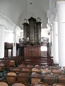 The organ of the church was built by Jonathan Bätz and delivered in January 1833 after the first church had burnt down. It was returned to the Netherlands, and finally installed on 3 May 1835. In 2016, it was restored.[7] Johannes Helstone was one of the organists of the church.[8]