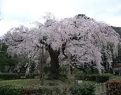 Maruyama Park (円山公園, Maruyama kōen) is a park in Kyoto, Japan. It is noted as the main center for cherry blossom viewing in Kyoto, and can get extremely crowded at that time of year (April). The park's star attraction is a weeping cherry tree (shidarezakura) which becomes lit up at night. It also becomes busy in the New Year's Eve Festivals.
