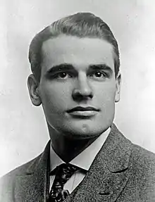 Marvin J. Udy was the grandson of John W. Hess, an American pioneer and member of the Mormon Battalion.[10] Born in Farmington, Utah on 19 February 1892 to Mathias Cowley Udy and Emily Rebecca Hess, he was the eighth of nine children.[11][12]