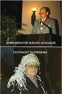 Schindler's leadership of Wayne State's Junior Year in Freiburg and Junior Year in Munich study-abroad programs (he served as director of both from 1975 to 1993) earned him the Bundesverdienstkreuz, erster Klasse, Germany's highest civilian honor. He twice served as resident director of the Junior Year in Freiburg program, established and run in conjunction with the Albert-Ludwigs-Universitaet, and lived with his family in Freiburg, in the heart of the Black Forest, during the academic years 1983-84 and 1987โ€“88. The Universitaet honored him twice: in 1982, with its silver medallion; and in 1985, with the designation of University Senator.
