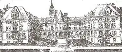 The Mary Andrews Clark Home was built by former U.S. Senator and Montana copper magnate William A. Clark, "as a perpetual memorial" to his mother, who died in Los Angeles.[6] Clark announced the gift in 1910 after acquiring a 350 by 180-foot (55 m) lot on top of Crown Hill,[7] a short distance west of Downtown Los Angeles. Clark said the structure to be built on the site would be a home for young women who work for a living, "where they can live in delight and comfort at a price which every woman can afford."[6] It was "four stories and basement. 190 x 132 feet, built around a court. ... exterior facing of pressed brick and roof of tile or slate. In addition to the parlors, assembly room, dining room, library, etc., there will be 130 living rooms, each of which will have lavatory and toilet.... cost $150,000."[8]