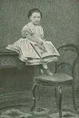 In the Dickens family she was known as 'Mekitty', and as a child she called her grandfather 'Venerables'.[1] Mary Angela Dickens and Charles Dickens were very close, and when she scalded her leg and foot with boiling water while staying at his country home Gads Hill Place he sat beside her bed and held her hand, reassuring her that he would make her well.[5]
