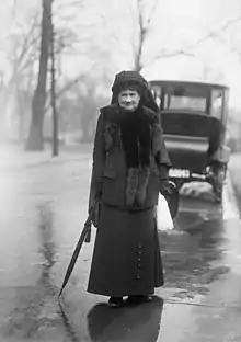 In 1902, Lee returned to the United States and was arrested on June 13 in Alexandria for riding in the back of a streetcar with her black maid, having refused to move to the whites-only section at the front of the car.[8][7] Her arrest was controversial, and historians have argued about what her intentions were for refusing to change seats.[7][8] She posted bond and was ordered to appear in court, but ignored the order.[1]