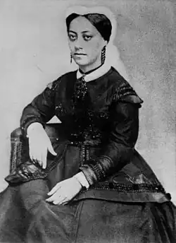 During that time, she returned to Nantucket for a short period after her husband's death. Edward Gardner had helped transport fugitives to their freedom, and he helped Pleasant manage her husband's estate after his death.[15] At some point, Pleasant developed a relationship with John James Pleasants,[lower-alpha 9] who was a former slave.[21] He had been the Creole foreman of her husband's plantation[14] or a waiter in New Bedford, Massachusetts.[13] During their marriage, he worked as a cook-seaman.[19][21] They were married c. 1848.[7] She had a baby daughter from one of her husbands named Elizabeth "Lizzie" J. Smith in the late 1840s.[4][19][21] Lizzie was likely left behind on the east coast as Pleasant established herself in San Francisco. Lizzie later made the journey west with Mrs. Martha Steele of Boston.[19]