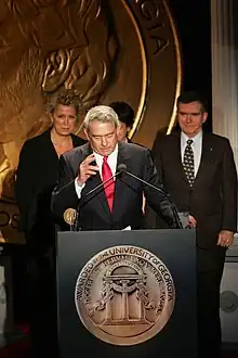 In an interview with The Washington Post, Mapes said Karl Rove was "an inspirational figure" for the critics of the segment.[17] Rove called Mapes' work "the gift that keeps on giving" due to the story's lurid foundations and the apparent boost it gave to President Bush during his reelection campaign.[19] Some Democratic critics of Bush, such as Terry McAuliffe and Maurice Hinchey, suggested that the memos originated from the Bush campaign with the purpose of discrediting the media's unveiling of Bush's National Guard service and changing the conversation from subjects like the Iraq War, singling out Rove, Ralph Reed and Roger Stone.[20][21][22] Rove and Stone denied involvement.[23][24][25]