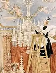 Petty was a naturally reticent person, and while her work began appearing in the lauded new magazine, Petty herself did not come to The New Yorker offices for some time and thus "for a long time nothing at all was known about herexcept that she regularly submitted a new and distinctive kind of drawing."[3] Even after becoming a part of the office scene, few knew her well. James Thurber said all he knew of her background was that she "was born in a brownstone house on West End Avenue. Her father was a professor. She did not have a particularly happy childhood. That's all, brother."[4] Petty contributed to the New Yorker for thirty-nine years, publishing 273 drawings and 38 covers. Her last New Yorker cover was published on March 19, 1966, and showed elderly "Mrs. Peabody" pulling on a broken calling cord.[1]