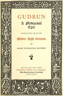 Mary Pickering Nichols (January 29, 1829 – February 3, 1915), was an American translator of German literature, active in the last quarter of the 19th century. She was the fifth of the six children of Benjamin Ropes Nichols and her namesake Mary Pickering. She is credited with making the first complete English translation of the medieval German epic poem Gudrun in 1889.[1]