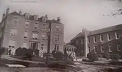 The hospital was run by Parochial Board (later known as Dundee Parish Council) as the Eastern Hospital.[3] Following the abolition of parish councils in Scotland in 1929 control passed to Dundee Town Council, under whose stewardship the hospital began to focus on the fields of maternity and childcare as Maryfield Hospital.[3] From 1948 it came under the control of the National Health Service and along with other local hospitals was run by Dundee General Hospitals Board of Management.[1][4] It eventually expanded to cover all of the site formerly occupied by the East Poorhouse. As a result, it became Dundee's second main hospital.[1] From the late 1940s a number of senior doctors were transferred from Dundee Royal Infirmary to Maryfield to develop the hospital, including Jean Herring, a protégée of Margaret Fairlie, who became consultant in charge of the Gynaecology Department in 1949.[5][6] A new geriatric unit was opened at the hospital by Princess Margaret in 1957.[7] Maryfield was also the site of a pioneering general hospital psychiatric unit, under the medical direction of Sir Ivor Batchelor.[8] In 1959 the psychiatric wards were amalgamated with Dundee District Asylum and Dundee Royal Asylum at Liff to form the combined Dundee Royal Mental Hospital at Liff.[1]