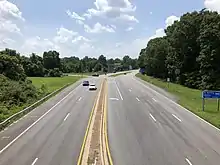 MD 176 was widened and resurfaced over its whole length between 1947 and 1950.[12][13][14] The highway was expanded to a width of 22 feet (6.7 m) from Dorsey to Harmans and to 24 feet (7.3 m) from Harmans to Glen Burnie.[12] The MD 295–MD 176 interchange was built as a diamond interchange between 1950 and 1953; a loop ramp from eastbound MD 176 to northbound MD 295 was added in 1956.[15][16] The highway's interchange with the Glen Burnie Bypass, which started as US 301, became MD 3, and is now I-97, was constructed as a diamond interchange between 1954 and 1956.[15][16] MD 176 was expanded to a divided highway on either side of its interchange with MD 3 (now I-97) by 1978.[17] The remainder of MD 176 from the west end of the divided highway to just east of MD 295 was expanded to four lanes in the late 1980s, with the bridge of Piney Run between MD 295 and MD 713 rebuilt in 1987 and the railroad overpass at Harmans rebuilt in 1989.[18][9]