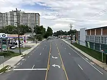 MD 190 crosses Cabin John Creek and expands to a four-lane divided highway just west of Seven Locks Road. The state highway has a partial cloverleaf interchange with I-495 (Capital Beltway) that includes access to Cabin John Parkway. East of the Capital Beltway, the route becomes a partially controlled access highway, with adjacent properties accessed by service roads or intersecting streets. MD 190 passes to the south of the Burning Tree Club and the Holton-Arms School before crossing Booze Creek. The highway continues through the southern part of Bethesda, where the road intersects MD 188 (Wilson Lane) and MD 614 (Goldsboro Road); between the two highways, the highway passes south of Walt Whitman High School. MD 190 loses access of control and becomes an undivided road with a center left-turn lane west of its underpass of the Capital Crescent Trail. The highway becomes an undivided four-lane road between its intersection with Little Falls Parkway and its crossing of Little Falls Branch. MD 190 reaches its eastern terminus at Western Avenue at the District of Columbia boundary. River Road continues into Washington, D.C. as a two-lane unnumbered street that ends at Wisconsin Avenue in Tenleytown.[1][3]