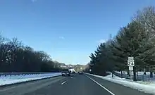 Another relocation occurred in 1956 to remove MD 24's staggered intersections at MD 7 in Van Bibber. Edgewood Road was extended north to tie into Emmorton Road just south of the interchange with I-95; this project bypassed Van Bibber Road.[26] MD 24 was relocated again near Van Bibber when the highway's interchange with I-95 was constructed in 1963.[27][28] This relocation left behind the roadways now marked as Walton Road and Woodside Road in the southeast and northeast quadrants, respectively, of the original diamond interchange.[29]