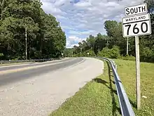 Maryland Route 760 (MD 760) is a state highway in the U.S. state of Maryland. Known as Rousby Hall Road, the state highway runs 4.56 miles (7.34 km) from Rousby Road in Drum Point north to MD 2/MD 4 in Lusby. The portion of MD 760 in Lusby was built as MD 503 in the early 1930s; the Drum Point section was constructed as a county highway by 1939. MD 503 was removed from the state highway system in the late 1950s. MD 760 was designated in two sections in the early 1960s.