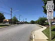 Maryland Route 808 (MD 808) is a state highway in the U.S. state of Maryland. Officially MD 808A and known as Main Street, the state highway runs 2.34 miles (3.77 km) from Ridgeville Boulevard north to MD 27 within Mount Airy. MD 808 follows the Carroll–Frederick county line for a portion of its length near its southern terminus. The county line portion is considered to be in Carroll County for maintenance purposes. MD 808 is the old alignment of MD 27 through Mount Airy. A portion of Main Street was paved by 1910; the sections south and north of the town center were constructed in the early 1910s and late 1910s, respectively. MD 808 was assigned to Main Street after MD 27's bypass of Mount Airy was completed in the mid-1970s.