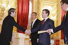 - ↑ Послы иностранных государств, вручившие верительные грамоты Президенту России (in Russian). Presidential Press and Information Office. 29 May 2009. Archived from the original on 10 September 2012. Retrieved 12 June 2009.