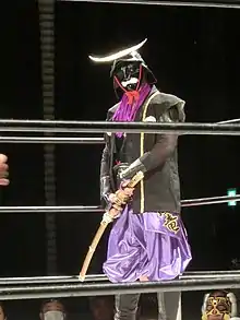 Masamune (政宗, Masamune)[3] (born August 16, 1974) is a masked Japanese professional wrestler. He currently works for Dotonbori Pro Wrestling and has also worked for Kaientai Dojo (K-Dojo) and Osaka Pro Wrestling (OPW) in Japan.[2] For several years he formed a tag team with Japanese wrestler Hideyoshi and was also part of a group known as Bad Force. Greatly influenced by lucha libre, Masamune has followed Mexican tradition for masked wrestlers, so his real name is not a matter of public record.