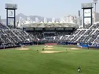 Masan Baseball Stadium is a baseball stadium in Changwon, South Korea. The stadium has an all-seated capacity of 11,000.[1] The KBO League club Lotte Giants played a handful of their home games in this stadium each season as their secondary stadium until 2011 (with the majority of their games being played at Sajik Baseball Stadium). Masan Baseball Stadium was the home stadium of the NC Dinos between 2012 and 2018, when they moved to the newly built Changwon Baseball Stadium.