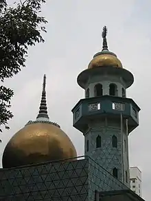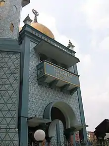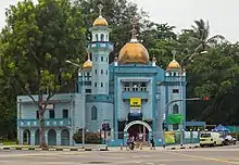 Masjid Malabar or Malabar Muslim Jama-Ath Mosque (Malay: Masjid Malabar, Arabic: مسجد مالابار), also known as Golden Dome Mosque;[2] is Singapore's only Malabar Muslim mosque.[3] The mosque is located at the junction of Victoria Street[4] and Jalan Sultan in the Kampong Glam district, in the Rochor Planning Area within the Central Area.[5][6] The mosque is built on the Sultan Mosque style with traditional blue and white lapis lazuli tile facade.[5][7] The mosque was nicknamed as little cousin of the Sultan Mosque, because of similar golden domes.[5]