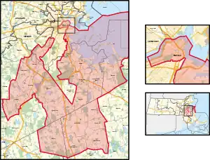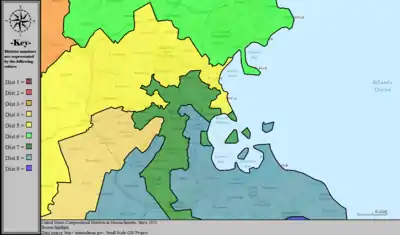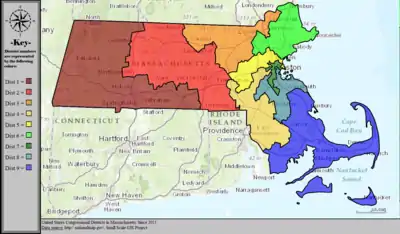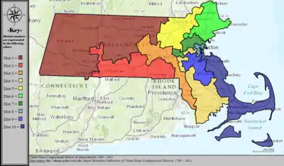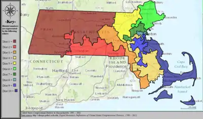 Table of United States congressional district boundary maps in the State of Massachusetts, presented chronologically.[5] All redistricting events that took place in Massachusetts between 1973 and 2013 are shown.