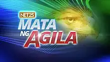 Mata ng Agila (transl.Eagle Eye) is a Philippine television news broadcasting show broadcast by Net 25. Originally anchored by Ely Saludar, Weng Dela Fuente and Sam Cepeda, it premiered on October 24, 2011, replacing i-Balita on the network's evening line up. Alex Santos and Rikki Mathay currently serve as the anchors.[1]