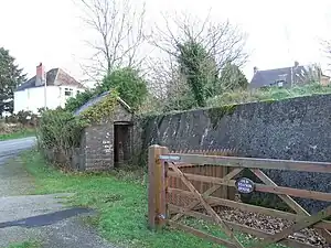 The Clarbeston Road and Letterston Railway, a subsidiary of the Great Western Railway (GWR), was opened on 30 August 1906, but at first there were no intermediate stations.[1] However, there was a signal box at Wolf's Castle, because although most of the route was built as double track, a portion near the middle, which included Spittal Tunnel and the cutting through Treffgarne Gorge, was single-track, and it was necessary to have signal boxes at each end of the single-track section.[2] The single-track section was later doubled, but although the temporary signal boxes at Spittal and Treffgarne closed with the introduction of full double-track working on 17 December 1906, Wolf's Castle signal box was retained to break the section, allowing two trains to proceed in the same direction between Clarbeston Road and Letterston simultaneously; there was also a crossover.[3]