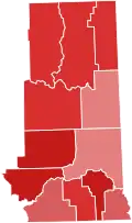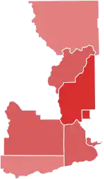 Larsen: 50–60% 60–70% 70–80% 80–90% >90% Matthews 40–50% 50–60% 60–70% 70–80% 80–90% >90% Tie: 50% No data | ||||||||||||||||