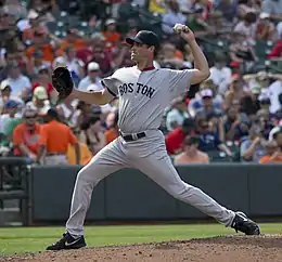 Thornton pitching for the Boston Red Sox in 2013
