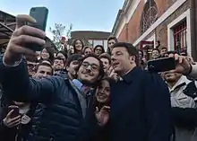 After the rejection of his constitutional reform in the 2016 Italian constitutional referendum,[11][12] Renzi formally resigned as Prime Minister on 12 December; his Foreign Minister Paolo Gentiloni was appointed his replacement.[13][14] He resigned as secretary of the PD following defeat in the 2018 Italian general election.[15] In September 2019, he left the PD and founded the Italia Viva party.[16] In January 2021, Renzi revoked his party's support to the Conte II Cabinet headed by Prime Minister Giuseppe Conte, which brought down the government and resulted in the 2021 Italian government crisis.[17] In February 2021, Renzi's IV supported Prime Minister Mario Draghi's national unity government.[18] Renzi has been described as a centrist and as a liberal by political observers.[19][20][21]