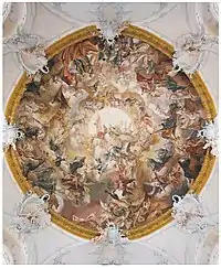 Dome fresco in the Benedictine Abbey Church of St. Marinus and St. Anianus in Rott am Inn