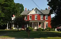 Matthew Warner House is a historic home located at Lima in Livingston County, New York. It was built about 1806 and is a rectangular two story, five bay wide center hall brick residence with a one-story three bay side wing. It was remodeled in the 1860s and in the 1920s. The 1860s remodeling resulted in the picturesque Gothic / Italianate character with the prominent cross cut gable and decorative front verandah. The house was used as an inn in the early 19th century and as a roadside restaurant in the 1930s.[2]