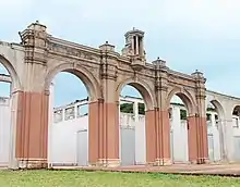 The original school was founded in 1913. Early students arrived to school via horse and buggy or the now defunct Kahului Railroad.[3] The old school site, at 20°54′56″N 156°20′55″W / 20.91548°N 156.34854°W, includes the campus's centerpiece administration building, built in 1921 and designed by architect Charles William Dickey, which fell into disrepair. The site was nominated to the State and National Register of Historic Places.[4] Work to restore the campus was started in 2004 by community organizations including the Friends of Old Maui High[5] and Community Work Day. The campus boasts the sculptures A Path Through the Trees by Satoru Abe, Growing by Toshiko Takaezu, and Carolina by Thomas Woodruff.