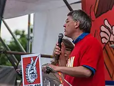 Maurizio Landini (born 7 August 1961) is an Italian trade unionist. Since January 2019, he is the General Secretary of CGIL. He was also former general secretary of FIOM from 2010 to 2017.[1] Landini is considered a socialist and is famous for his populist political style.[2][3]
