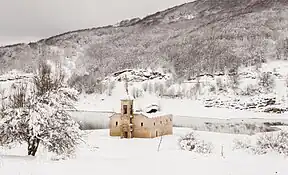 The Mavrovo National Park (Macedonian: Национален парк Маврово) is the largest of the four national parks of North Macedonia. Located in the west of the country, it spreads over an area of about 780 km2 (300 square miles) and is characterized by deep canyons, lakes and dense forests that abound with diverse wildlife. It was established in 1949 by a law passed by the National Assembly of Macedonia; later the legislation was changed to enforce a much stricter protection system, dividing the park into three zones: strict nature reserves, managed reserves, and a tourist zone.