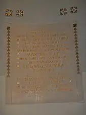 Commemorative plaque, reading: "The buildings of Vienna's Central Cemetery were realized under the direction of the City's Building Office following plans by architect and Imperial-Royal professor Max Hegele and city councilor Ludwig Zatzka."