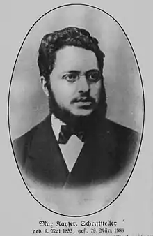 - ↑ Eckhard Hansen (author-compiler); Florian Tennstedt (author-compiler); Dirk Hainbuch (author-compiler); Karin Christl (author-compiler) (2010). Kayser, Max: Redakteur, * 9.5.1853 in Tarnowitz (Schlesien); † 29.3.1888 in Breslau; jüd./diss.; ∞ ja (PDF). Vol. 1. Kassel University Press GmbH. p. 84. ISBN 978-3-86219-038-6. Retrieved 8 January 2022.