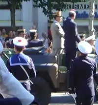 While Jacques Chirac was reviewing troops in a motorcade such as this one on Bastille Day 2002, he was shot at by Brunerie.