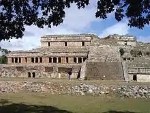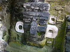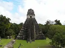 Tikal's great rival was Calakmul, another powerful city in the Petén Basin.[47] Tikal and Calakmul both developed extensive systems of allies and vassals; lesser cities that entered one of these networks gained prestige from their association with the top-tier city, and maintained peaceful relations with members of the network.[48] Tikal and Calakmul engaged in the manoeuvering of their alliance networks against each other. At various points during the Classic period, one or other of these powers would gain a strategic victory over its great rival, resulting in respective periods of florescence and decline.[49]