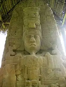 Stela from Toniná, representing the 6th-century king Bahlam Yaxuun Tihl[116]