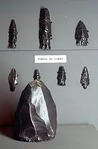 Obsidian spearheads with a lithic core, Takalik Abaj