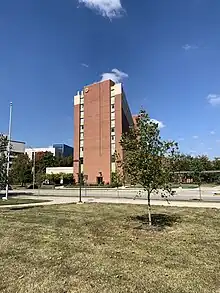 Maynard K. Hine Hall and University Tower is a conjoined academic center and first-year student residence located on the Indiana University Indianapolis campus. The building is located north of Robert E. Cavanaugh Hall, Joseph T. Taylor Hall, and the Business/SPEA Building. The building serves as a hub of student activity with its close proximity to the IUPUI Campus Center to the southwest, Lockfield Green to its north, and the North Residence Hall to its northwest.