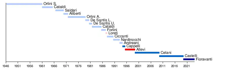 From 1946 to 1995, the Mayor of Ascoli Piceno was elected by the City's Council.[3]