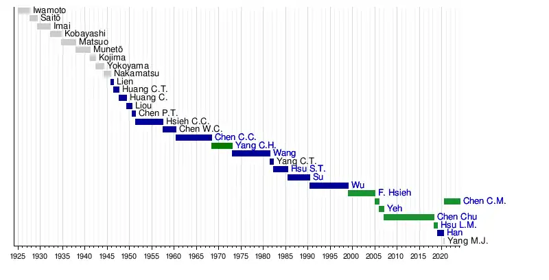 | Oct 1945–present | Mayor of Kaohsiung | 高雄市市長 | Gāoxióng Shì Shìzhǎng |