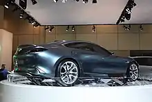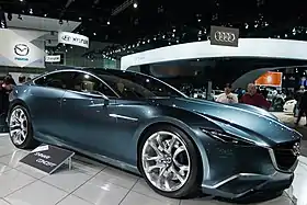 It comes in the form of a four-door coupé and its name which indicates the momentum or the start of the movement for a person or an animal,[2] thus its slender design, resulting from a collaboration between Japanese, American and European offices is signed by Yong Wook Cho, it was the first concept car to adopt the "Kodo" style[3] "the soul of the movement" from Mazda.[4]