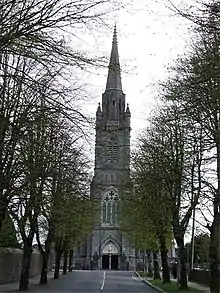 The situation of the barracks was on the regular grid pattern for which the town of Templemore is noted and for which Sir John Craven Carden was also responsible. It occupies the most elevated ground in the town and is less than 50 meters from the main gate lodge of the Priory - the main residence of the baronet. A broad boulevard (Church Avenue) extends from the entrance gates over the River Mall at "Small Bridge" to the crossroads at Bank Street (called Military Street pre-independence). From the crossroads, the left hand road proceeds directly to the Town Hall while straight ahead, the Avenue leads to the Church of the Sacred Heart (Roman Catholic).[1] The right hand road terminates at Templemore railway station which opened on 3 July 1848.[4] Proximity to the station greatly facilitated the rapid movement of crown forces throughout the province of Munster.[4]