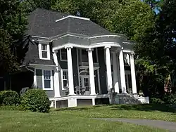 McClellan Heights is the largest neighborhood in the east end of Davenport. It is located east of the Village of East Davenport. It runs from Jersey Ridge Road to the Bettendorf city limits, and from River Drive to Middle Road. Dating from 1894 to 1940, four hundred houses make up the McClellan Heights neighborhood.[2] The neighborhood is made up of many hills and ravines. The streets follow the topography which requires many winding roads and odd-shaped lots. The southern portion of McClellan Heights is very wooded which adds to the attractiveness of the neighborhood.[3] Developed from south to north, including four very large mansions built before World War I, the area became popular with upper-middle-class residents. The area was mostly settled by Dutch and New England immigrants. The park-like setting, and proximity to and view of the river, have kept this neighborhood fashionable even today. The houses remain in good to excellent condition. The few brick streets that run through the neighborhood also remain in excellent condition.