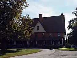 McCoy House, also known as the AuClaire School and Gingerbread House, is a historic home located at Kirkwood, New Castle County, Delaware. It was built between 1892 and 1897, and is a 28-room, 2+12-story, six-bay, brick house. It features a wraparound verandah, steep gable roof, and is covered in brown glazed tiles imported from Belgium. It is considered one of the most unusual structures in the State of Delaware and reflects the builder's unique expression of the European Arts and Crafts movement.[2]