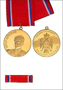 The Medal of Petar Mrkonjić (Serbian: Медаља Петра Мркоњића) is a Medal of Republika Srpska.[1] It was established in 1993 by the Constitution of Republika Srpska and 'Law on orders and awards' valid since 28 April 1993.[2]
