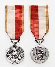 The Medal of the 40th Anniversary of People's Poland (Polish: Medal 40-lecia Polski Ludowej) is a former civil decoration of Poland established by the Sejm on 26 April 1984 to recognize the contribution of working people in the development of the socialist state. It was awarded between 22 July 1984 and 22 July 1985.[2] It was disestablished in 1992.[3]